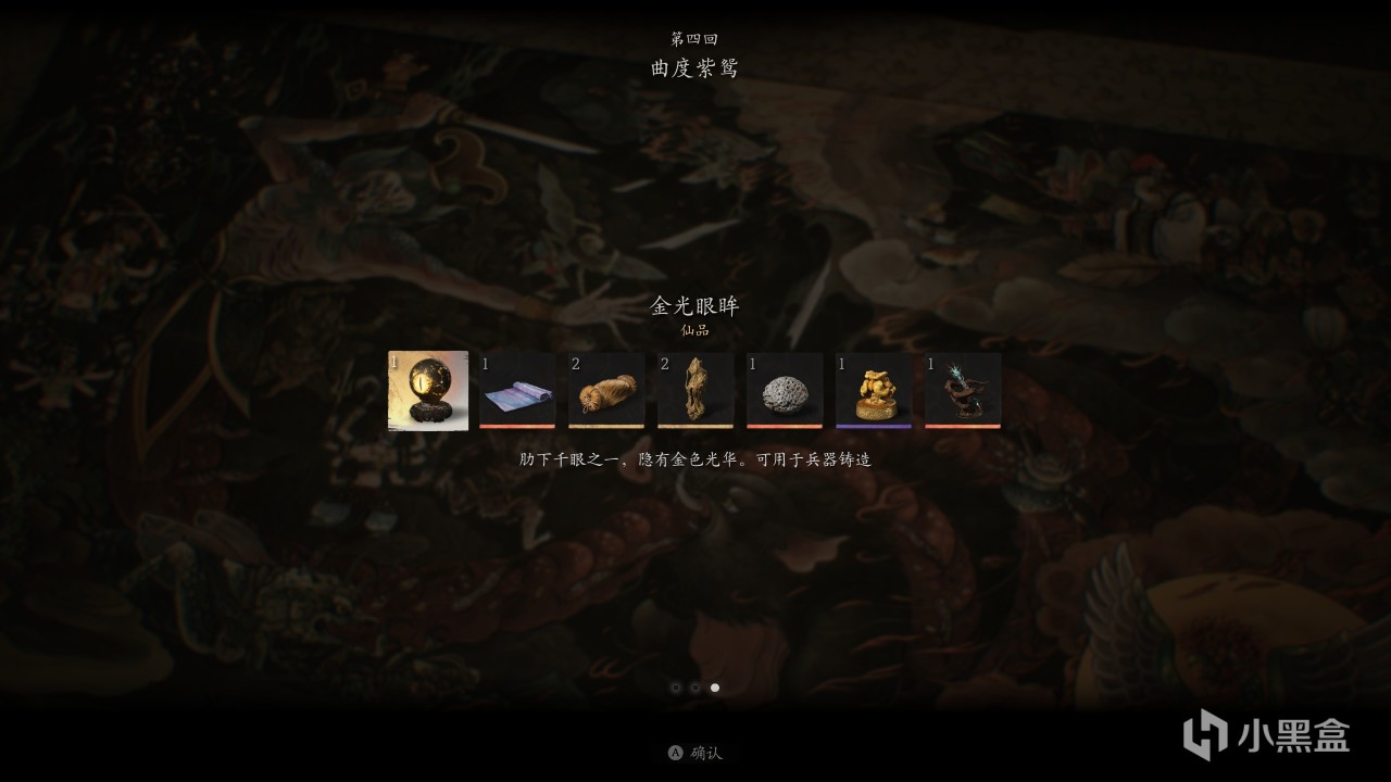 擊敗獎勵:【兵器專材-金光眼眸】可用於升級仙品【昆棍·百眼】的製作,以及一些升級所需要用到的材料