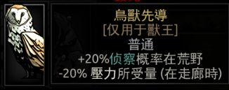 獸王可以選擇34技能爲主的反潛流,以及45技能爲主的流血流,但是獸王流血效果挺高的,敵人容易直接流血流死造成留不下屍體,從而導致五技能的額外效果,至於六技能可以通過藍色飾品永恆之種來彌補。