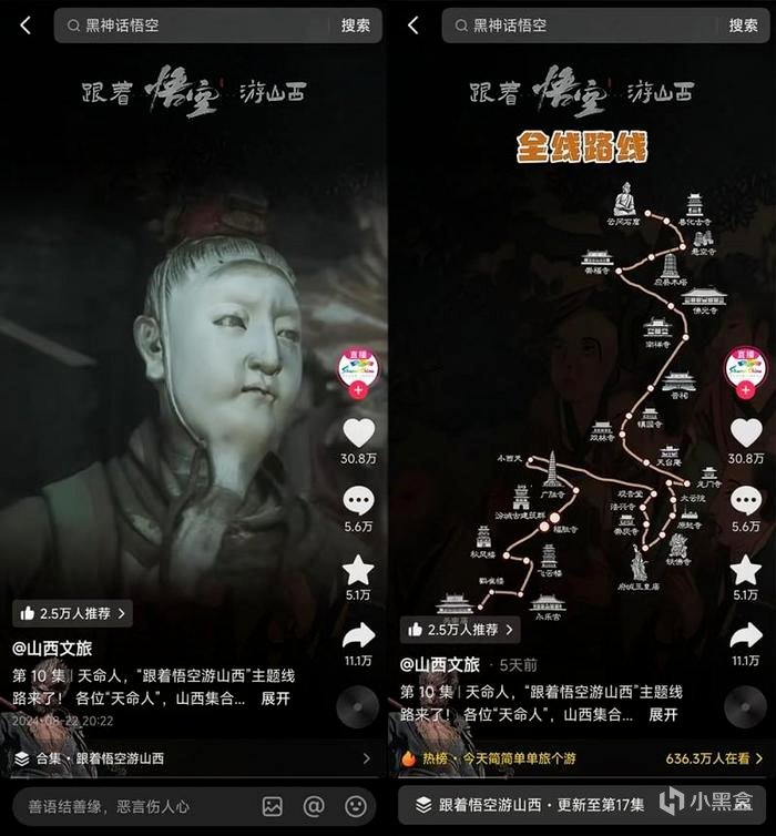 去年TGA年度最佳遊戲(遊戲界的“奧斯卡最佳”)《艾爾登法環》,在遊玩時被稱是處處絕景,走到一個地方就是讓人震撼的景色,“黑猴”的畫面可以說每個畫面是絕景,隨便截圖都可以當做手機、電腦背景圖。製作團隊也確實是把國內上百各寺廟、古蹟等名勝掃描並重現在了遊戲裏,取景地之一的山西,還提供了“跟着悟空遊山西”主題旅遊路線,最先通關的玩家可以免費體驗;跟孫悟空關聯的連雲港花果山也提供通關玩家免費游來招攬遊客。
