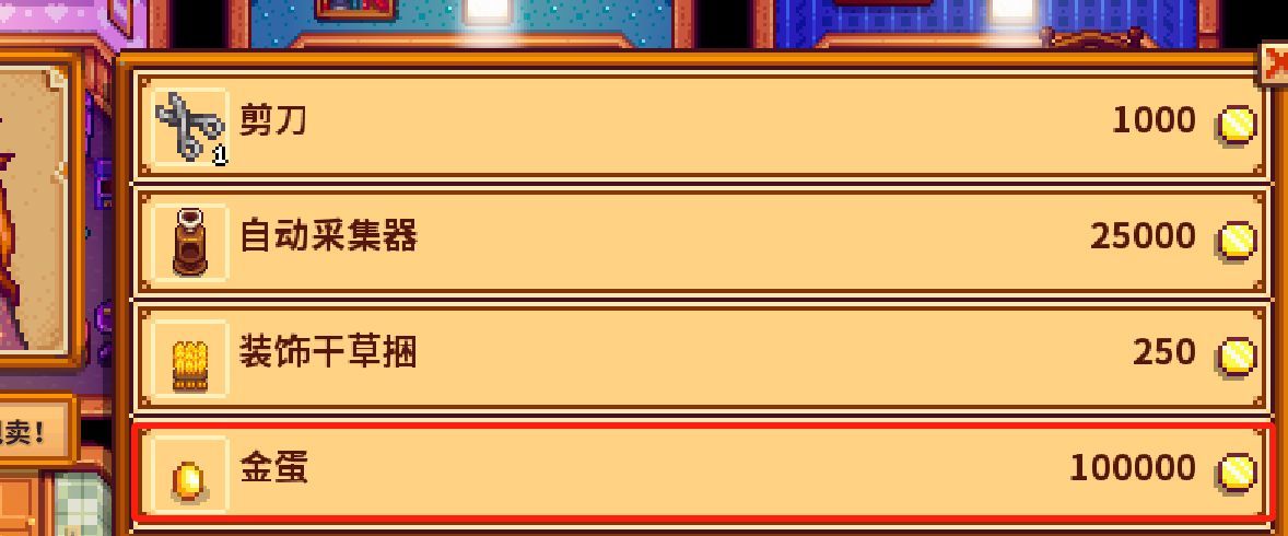 3.1.3玩家睡覺時可能觸發隨機事件:一個金色女巫會飛過雞舍並且在裏面留下一顆金蛋;