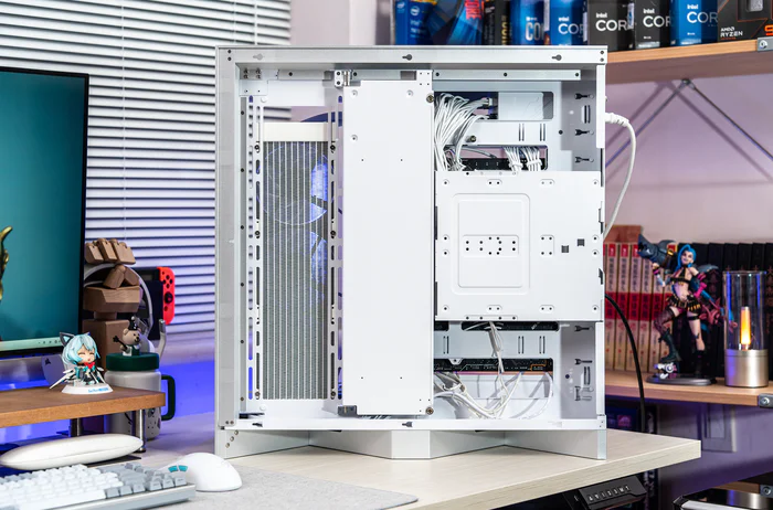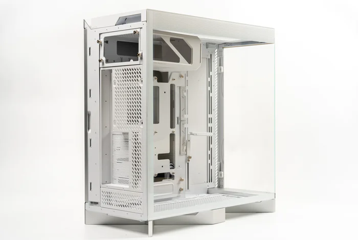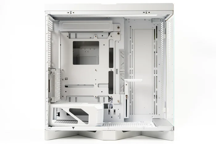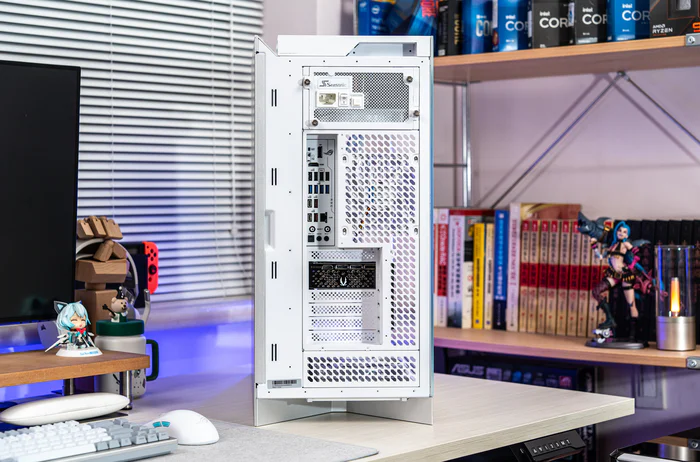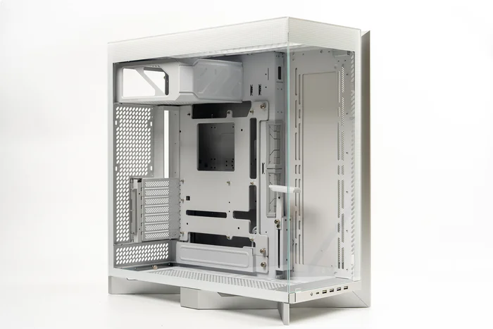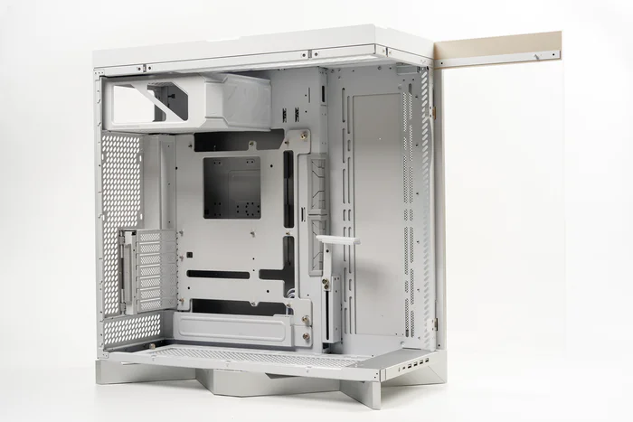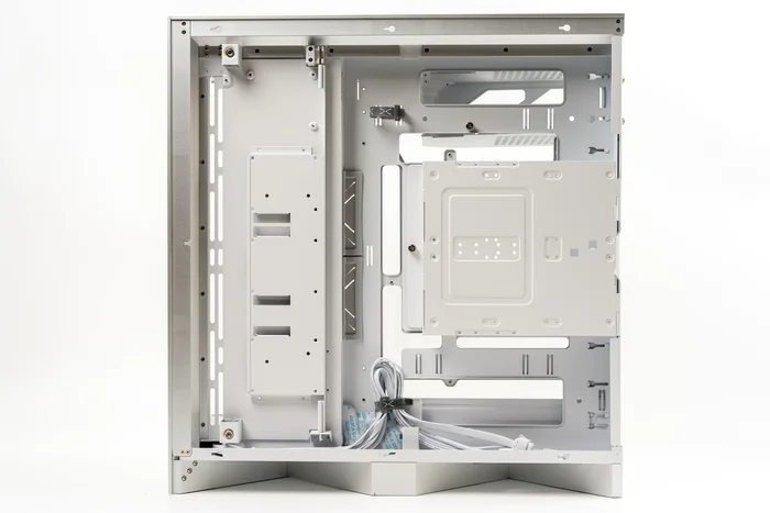 整機的尾部,左側的大深度背線空間,以及右側電源倉、主板托盤、底部一覽的三部分可拆卸模塊化設計,可以讓電源下置主板上移