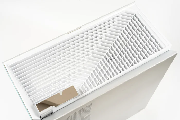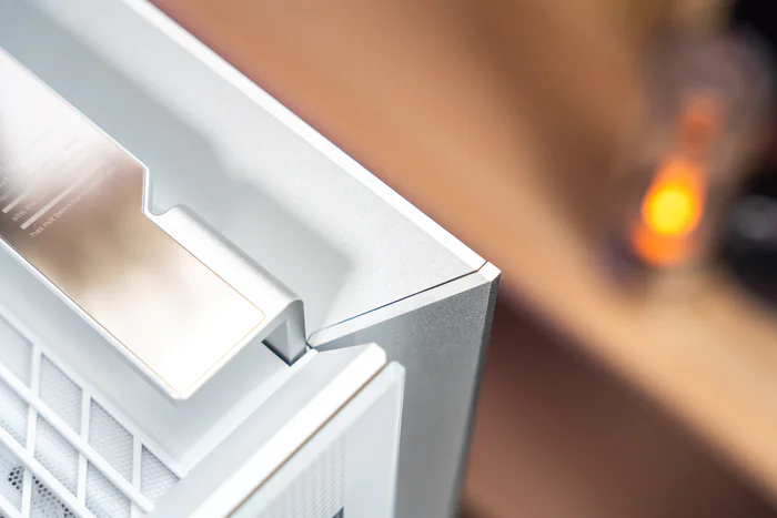頂部矩陣式通風孔設計,前面有一個全鋁合金把手,整個面板爲塑料材質併爲磁吸設計,拿取非常簡單