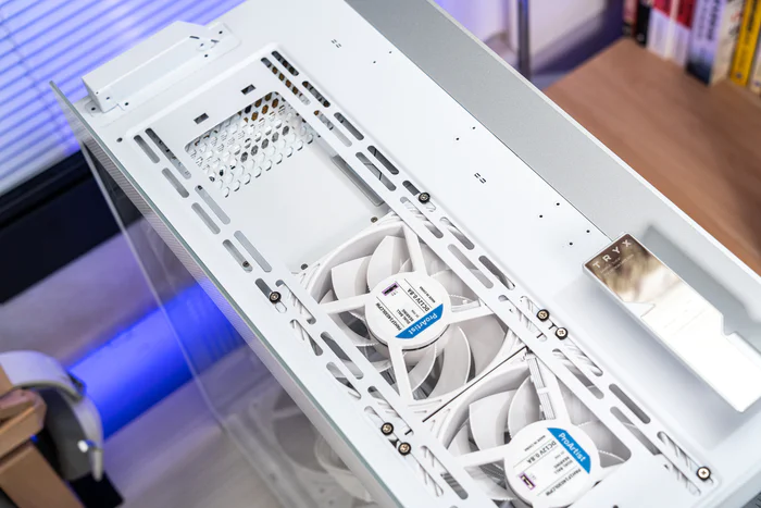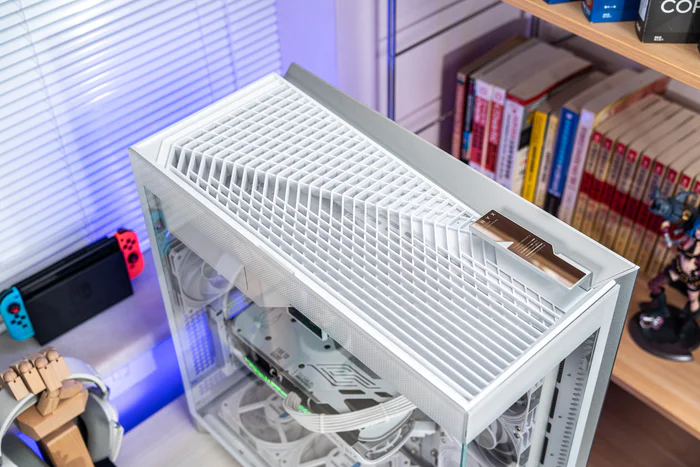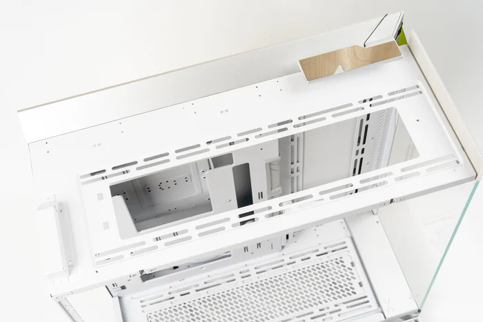 打開磁吸的頂部面板,這裏提供了最大420冷排設計,坐下和右上分別是兩個爲搬運設計的把手