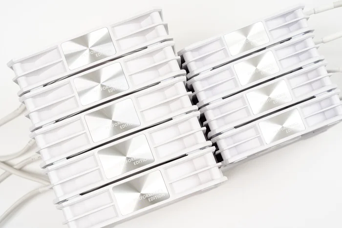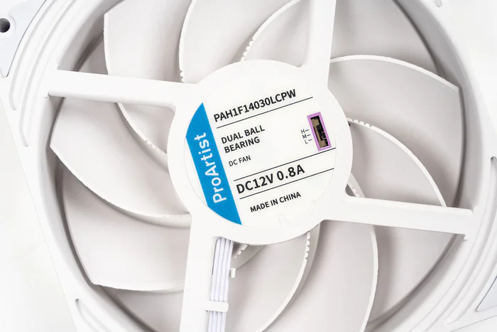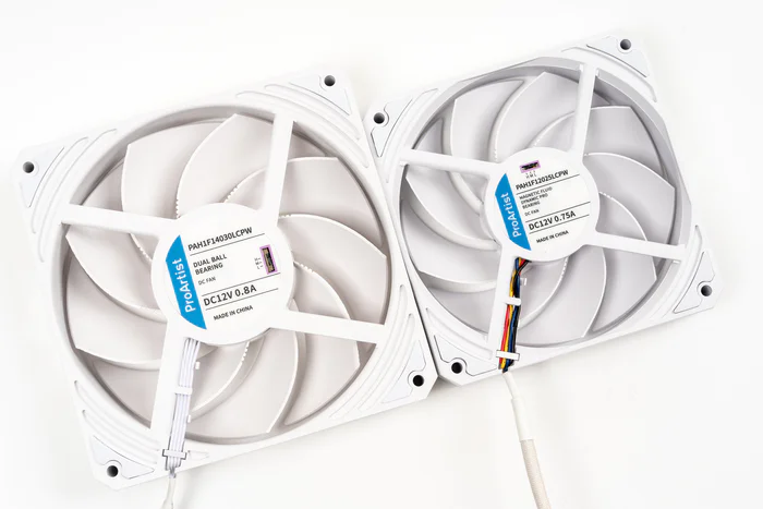 本次的裝機中使用了來自雅浚的高端風扇——14030規格的H14PE和12025規格的標準風扇H12PE,這兩款產品爲準工業級風扇,產品整體由LCP液晶聚合物材質製成包括扇框和扇葉,採用三相六級馬達和FOC閉環控制,並使用了三種轉速模式,其中H12PE爲MFDB軸承,而H14PE則採用了更高級的雙滾珠軸承