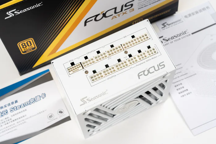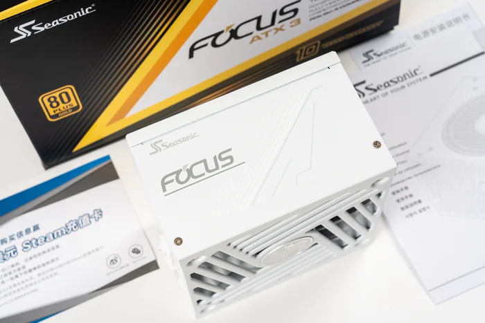 海韻更上一層樓的FOCUS經典主流電源的V4版本,經典的主動式PFC+全橋LLC+同步整流+DCDC結構的電源,在製造工藝上採用CHROMA MES 先進製程並採用國際主流品牌功率元器件與IC芯片、全日系品牌高品質電解電容與固態電容,此次新版更新還採用了OptiSink高效導熱技術和模塊化線路設計使得線路體積縮小48%、導熱係數提升8倍使得電源內部散熱空間與效率獲得顯著提升。當然其原有特點也依然保持一貫的水準,其一,原生12V 2x6 16-pin接囗及全套壓紋模組線,16AWG線徑和9.2A耐高電流鍍金端子;其二是14CM的小巧機身下仍使用13.5cm的FDB風扇來保證靜音與散熱效率;其三採用了第4代創新數字IC智能溫控技術,數字IC監控實時溫度及負載,自動調節風扇轉速,更精確控制風扇啓停/啓轉,0dBA模式延長風扇使用壽命,兼具散熱與安靜體驗;其四採用的海韻自家高端電源設計的SDP智能雙重保護更安全,高於intelATX3標準的200%瞬時峯值功率;其四十年質保。最後,V4新版FOCUS電源的白色限定版終於純白了,電源本體包括所有模組接口、電源接口、電源開關、散熱風扇、全套白色壓紋模組線的膠殼以及配置的電源線也終於全部白色了