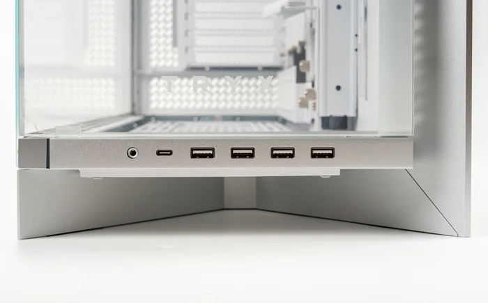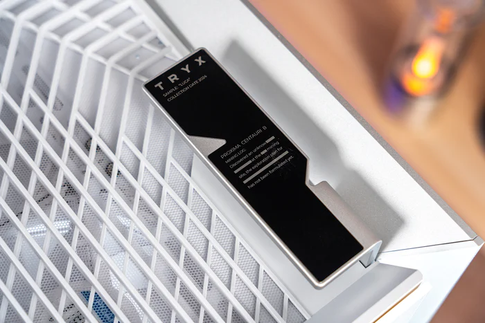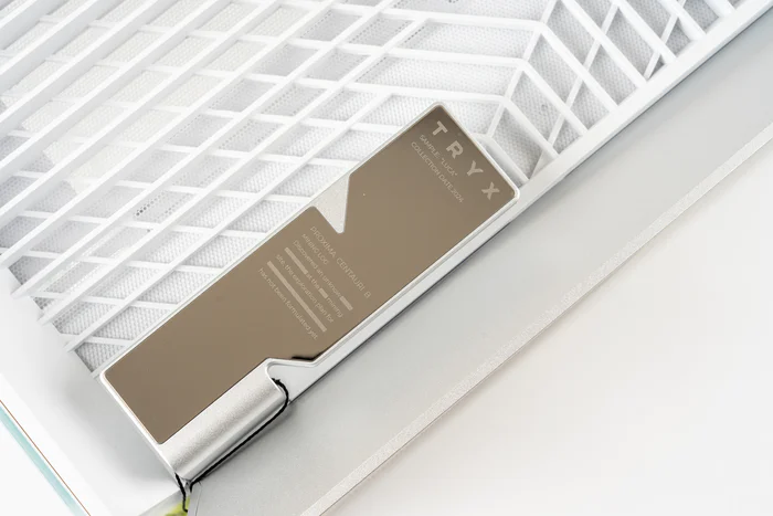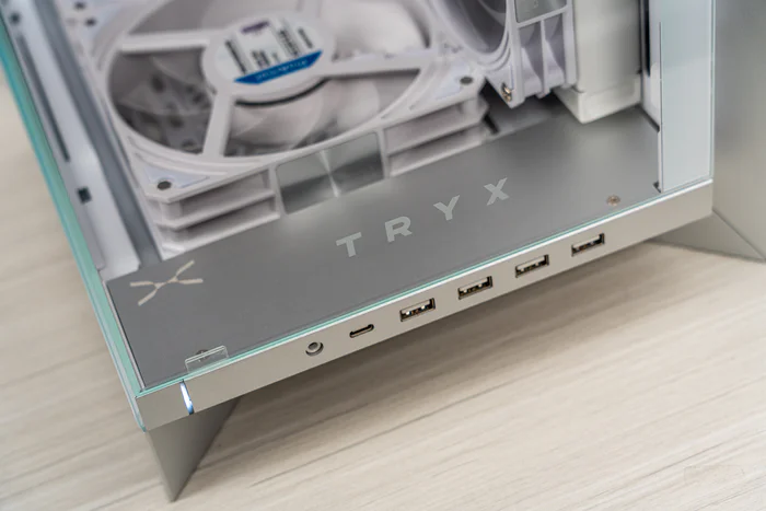 鋼化玻璃上的TRYX,與機箱內鋁合金上的TRYX 的“X”