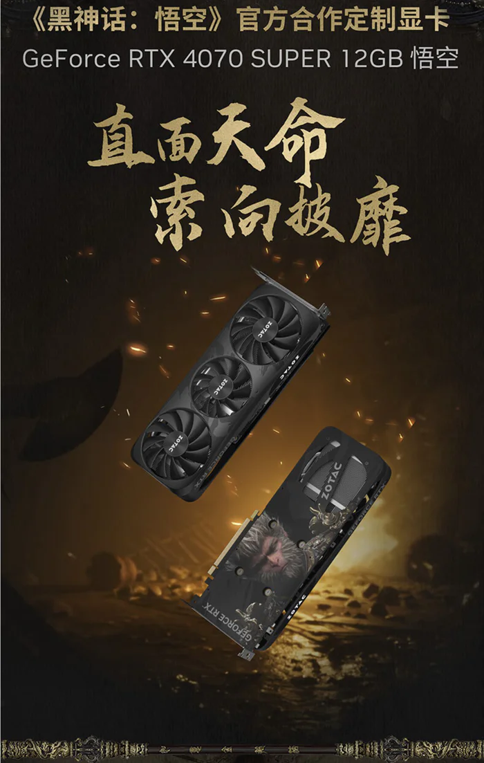 期待已久的黑神話·悟空終於上市,作爲一個天命人,國人自己的3A大作怎能不支持,索泰也推出了一款黑神話:悟空的官方合作定製顯卡GEFORCE RTX 4070SUPER 悟空