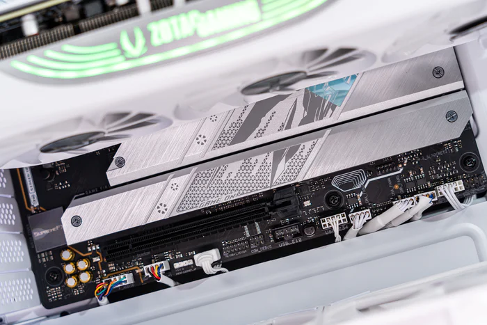 5個M.2設計,其中有4個在底部這兩條散熱盔甲下面,多M.2黨們的狂喜
