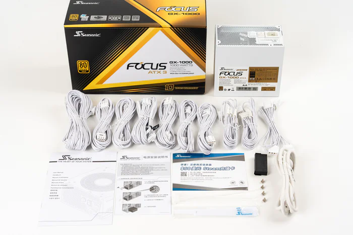 FOCUS 新版V4 GX1000白色限定版的全家福,附件中的電源線也配置了純白色