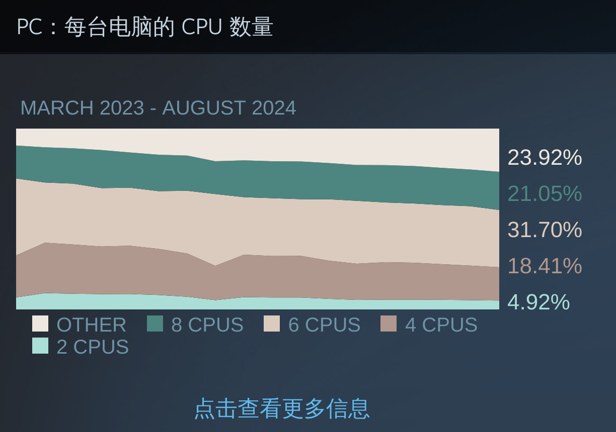 今日Steam官方公佈了2024年8月Steam硬件和軟件調查報告,從顯卡、處理器、操作系統等各品牌和型號的佔比展示了當前Steam玩家的整體情況,以下爲本月報告詳情。