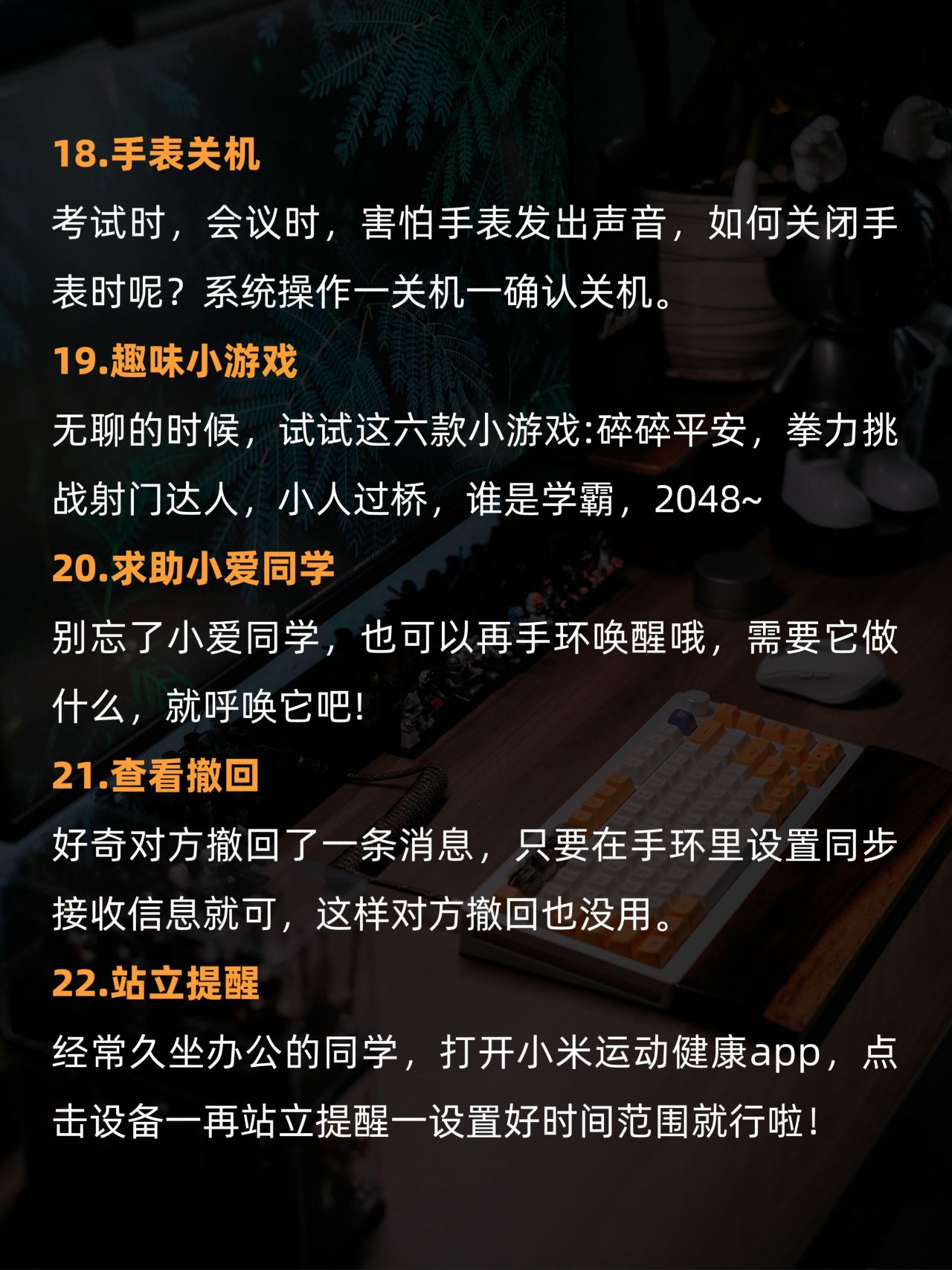揭祕小米手環的25個隱藏功能,建議收藏!!! 2024-09-02 數碼硬件 我們來重點介紹下,小米智能手環的25個隱藏功能。每一個都相當實用,沒有手環的寶子們也可以先碼住,大家快去試試吧! 更多遊戲資訊請關註:電玩幫遊戲資訊專區 電玩幫圖文攻略 www.vgover.com