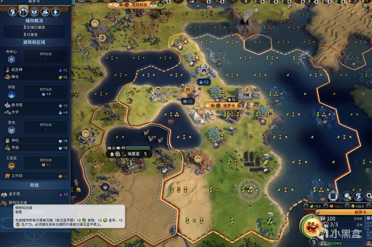 佩特拉古城:爲該城市所有沙漠單元格+2食物