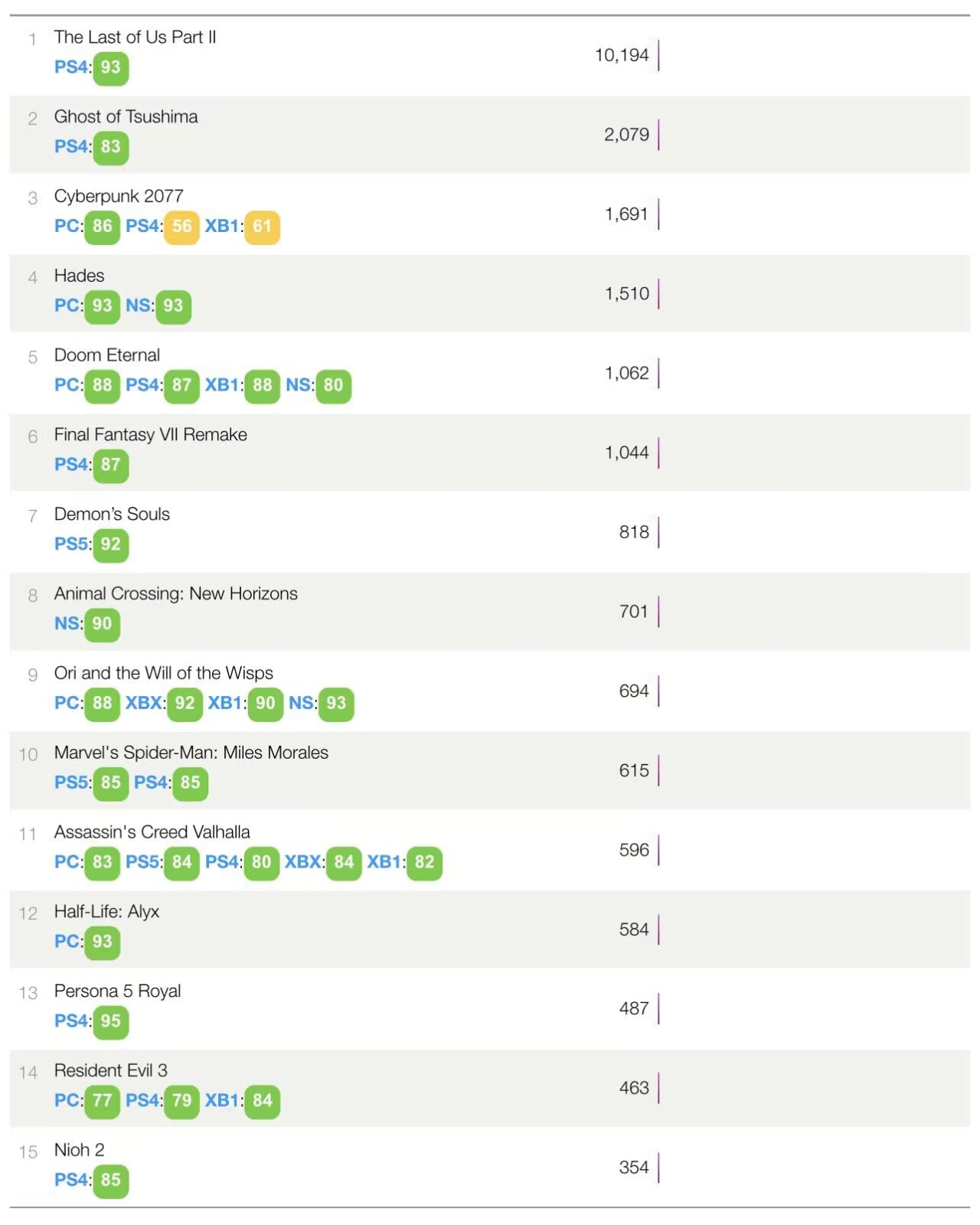 就這三年來看,好像確實如此。但如果我們把時鐘的指針倒轉回2019年之前,我們會發現,TGA的GOTY和metacritic的“媒體均分”並無關係。