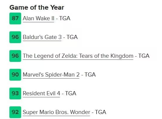 2.TGA看重媒體評分