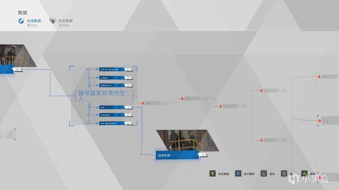 同时,每一段剧情的结算界面可以查看全球数据与好友数据,可以得知有多少人与自己选择相同,这也是一大乐趣。笔者的所有侦察任务全都失败,一看仅有6%的玩家和我一样笨,也是不禁发笑