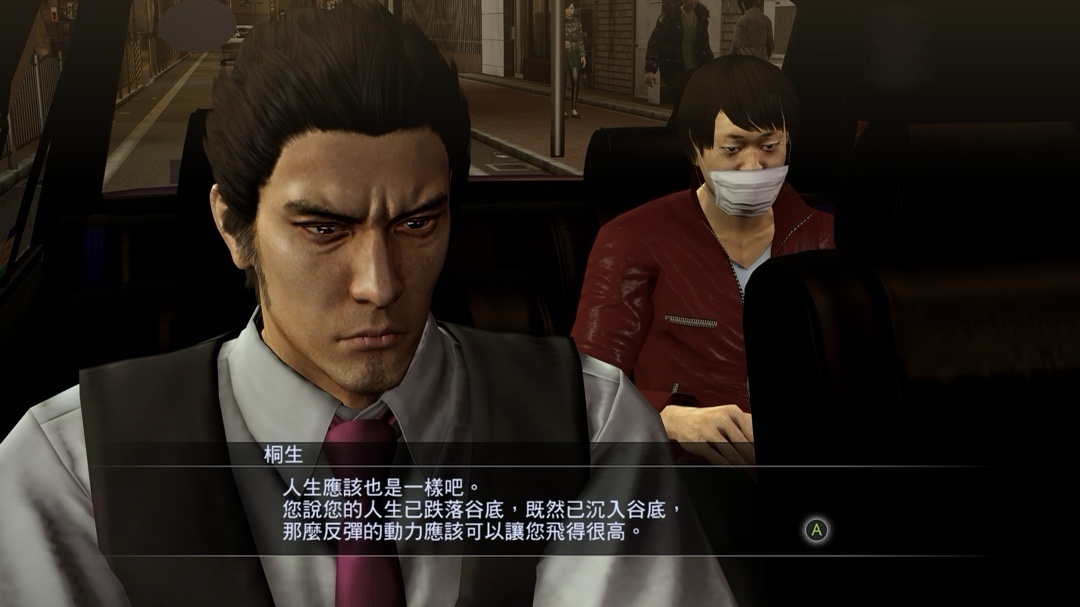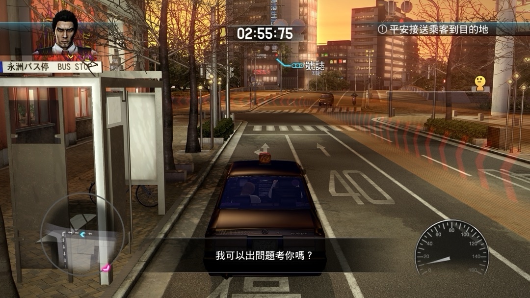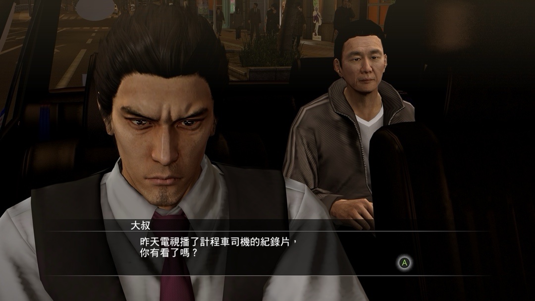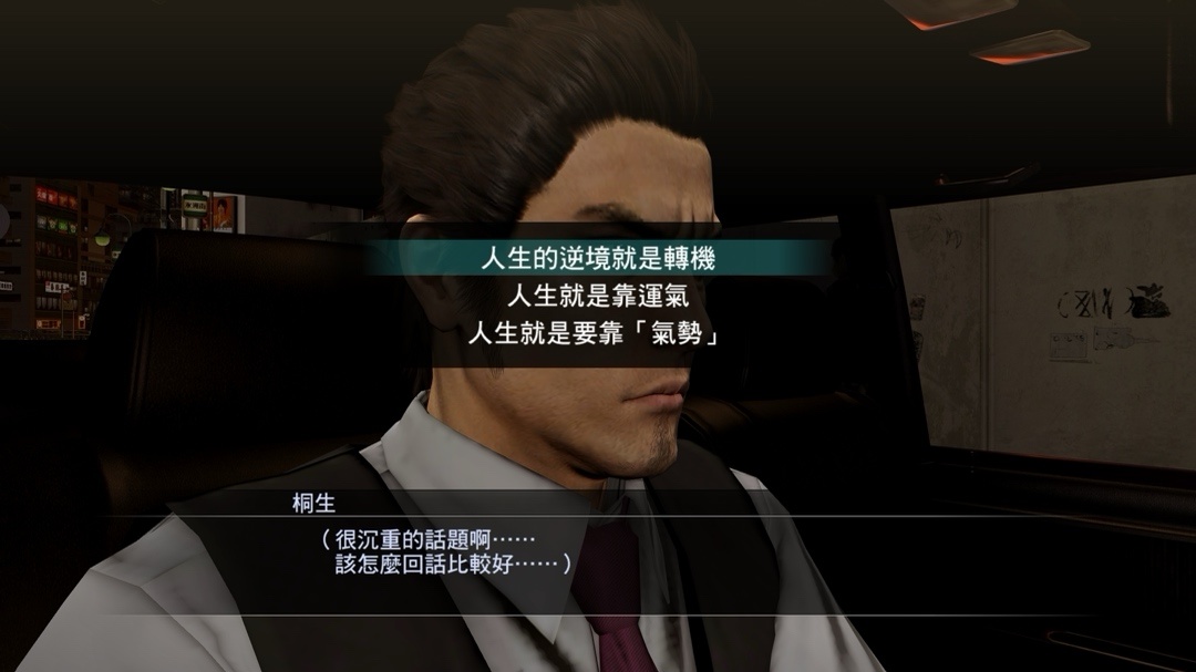 由桐生操控駕駛,玩家負責專注客人提出的問題,察言觀色等等,這部分佔比部分較大,包含很多小故事,很多故事確實能感受到製作組的用心,可這種小故事做的越好,主線就覺得可惜,明明知道怎麼寫故事,真的非常惋惜(Level up!!!)