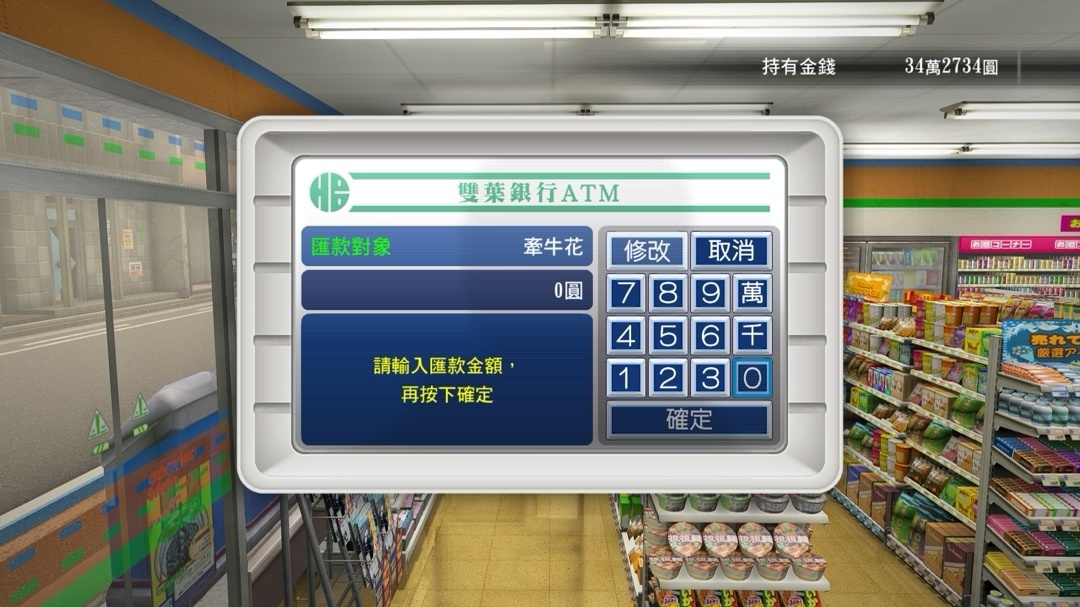 這代的ATM,終於不是擺設了,桐生可以給孩子們匯款,而且完成出租車任務還可以在這裏領工資,可以說桐生是個笨拙的男人,無論主線還是支線都只知道匯錢,沒有實際的關心和電話問候,但是他確實是個溫柔的男人,只不過是一個不太會表達的人罷了,男人不都是如此嘛!(Level up!!!)