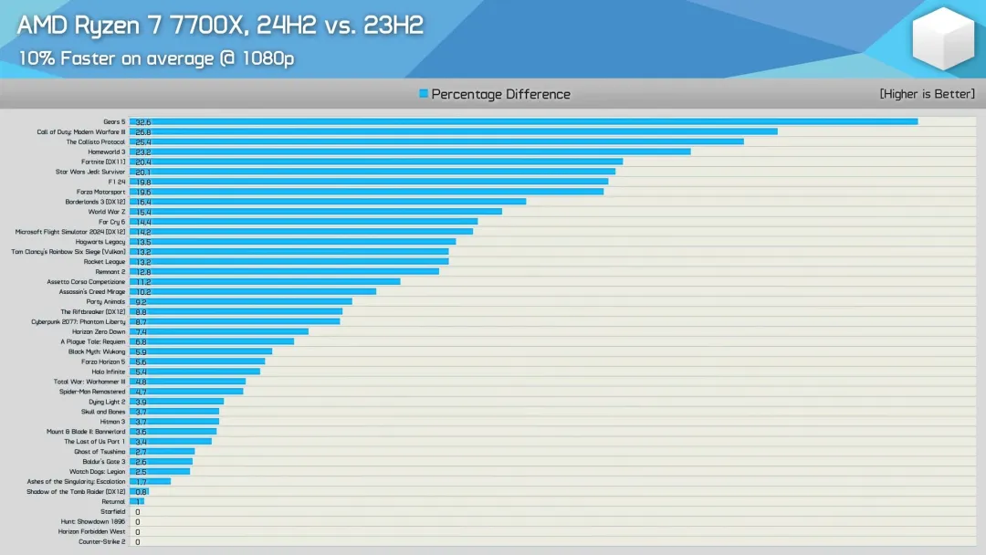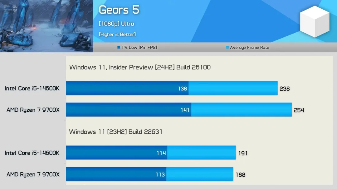外媒 @HardwareUnboxed 在內測版 Windows 11 24H2 Build 26100 中對多達 40 款遊戲進行了測試。