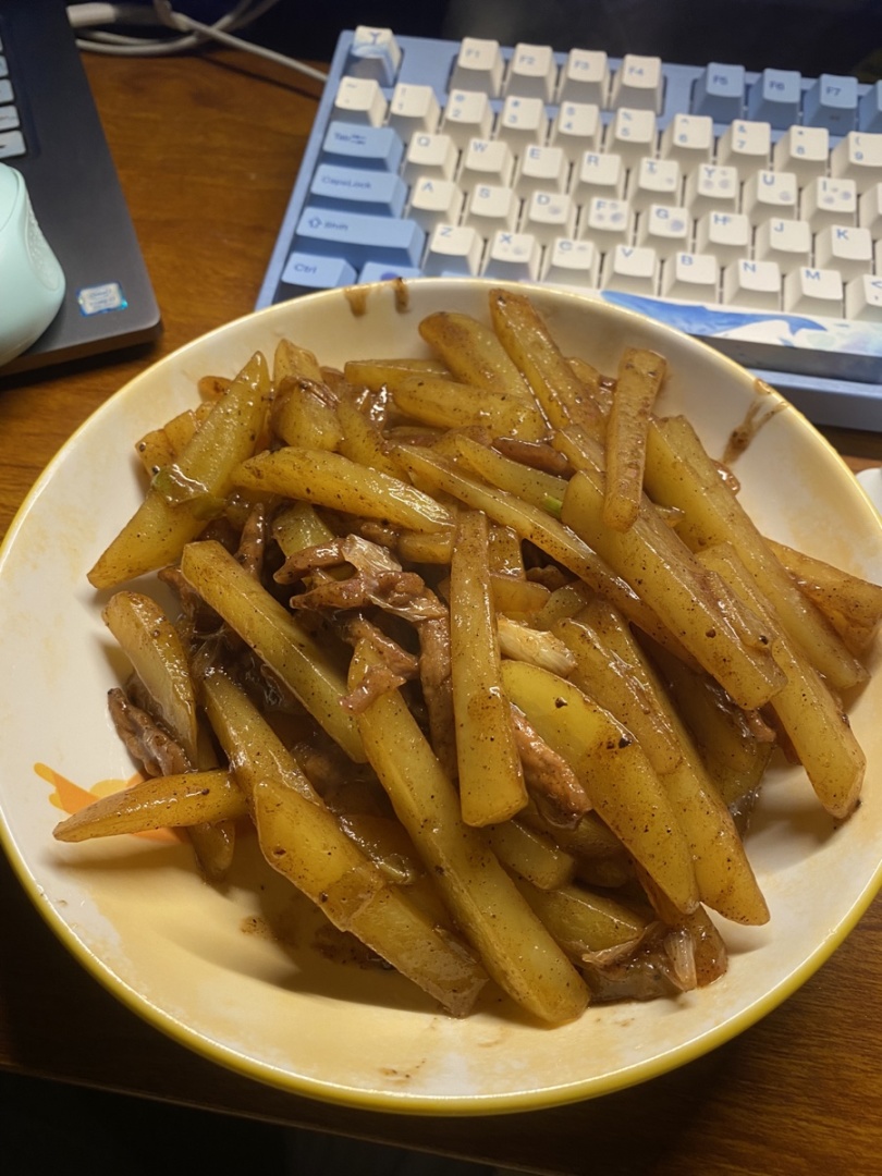 家里剩的食材做了个菜,本来想用番茄来的,但是番茄坏了,这两天喝了太冰的水肠胃不适