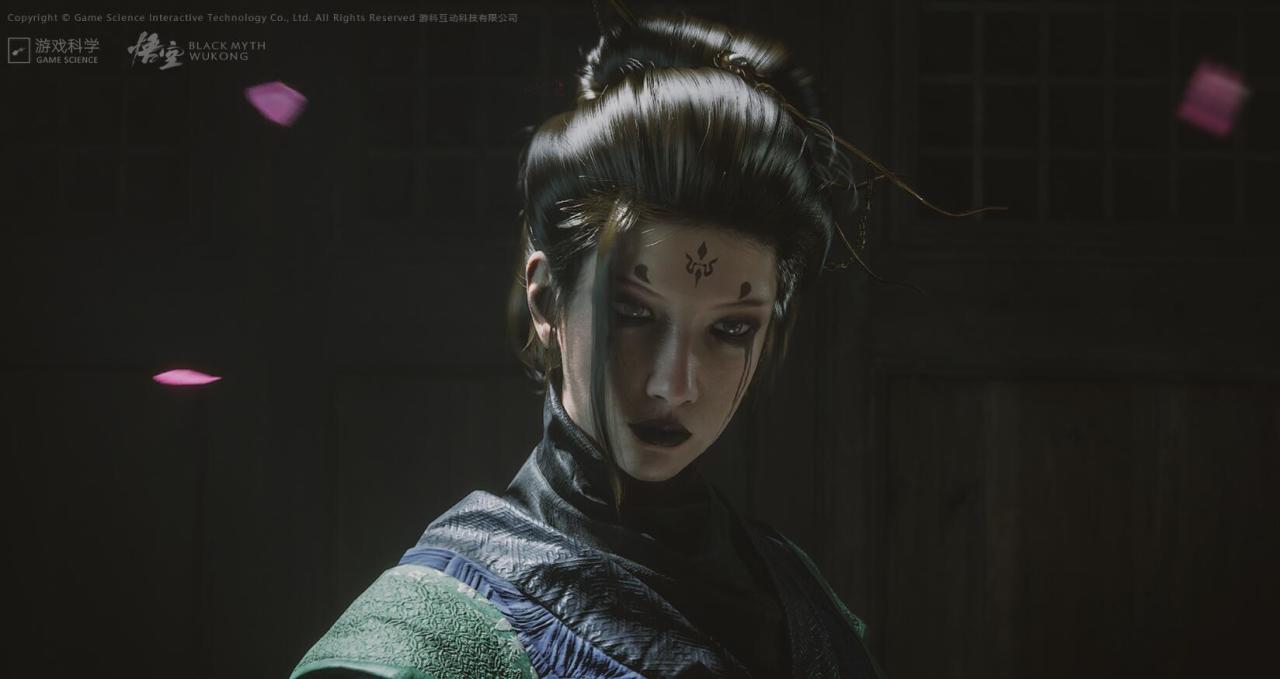 提到美學設計我們也不能忽略遊戲的人物設計,《黑神話:悟空》的人物建模十分講究,遊戲中妖怪很多,無論是路邊的小怪還是天命人、豬八戒等重要角色,他們身上的毛髮建模都很細緻,並且完全沒有僵硬感,而各位人類形態npc的建模也都很精美,人物皮膚的狀態不油膩,不知道有多少人迷上了蜘蛛精和亢金龍的人類形態。各類人物的設計也大多貼近原著,例如孫悟空毛臉雷公嘴的“猴相”,豬八戒的黑豬形象。各位角色的武器甲冑就更值得一提了,序章中孫悟空手持如意金箍棒,頭戴鳳翅紫金冠,身披鎖子黃金甲,十分威風。孫悟空的甲冑大幅參考了古代雕像和繪本,結合現代甲冑特點的同時做了一些藝術加工,甲冑本身結構合理,束甲繩、束甲拌、胸板等各要素齊全,說明遊戲科學團隊在此方面還是下了很大功夫的。