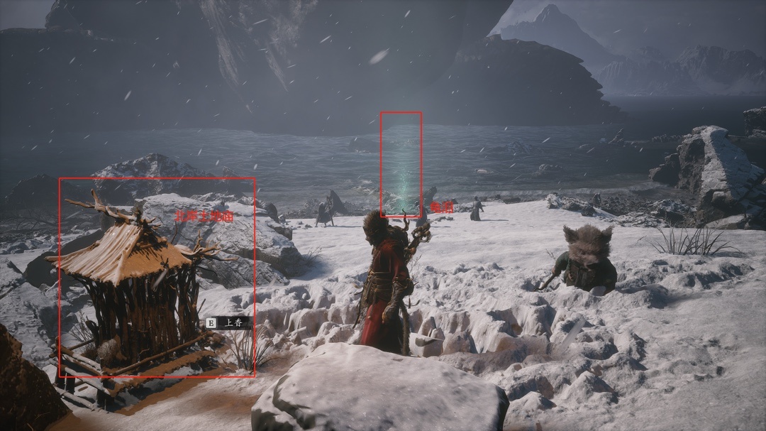 第三個魔將在長生大道土地廟右邊,雪地的深處有一具屍骸,可交互