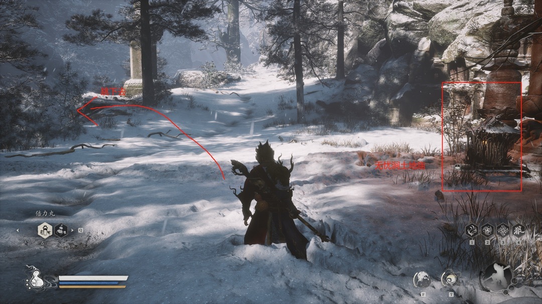 3、無憂澗土地廟旁邊跳下去,河流走到底,跳下懸崖,在瓜田打翠笠武師獲得【禁字決】