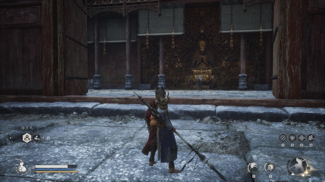 2、在小雷音寺左邊,變身狐狸,進入不空的寺廟,開啓對戰