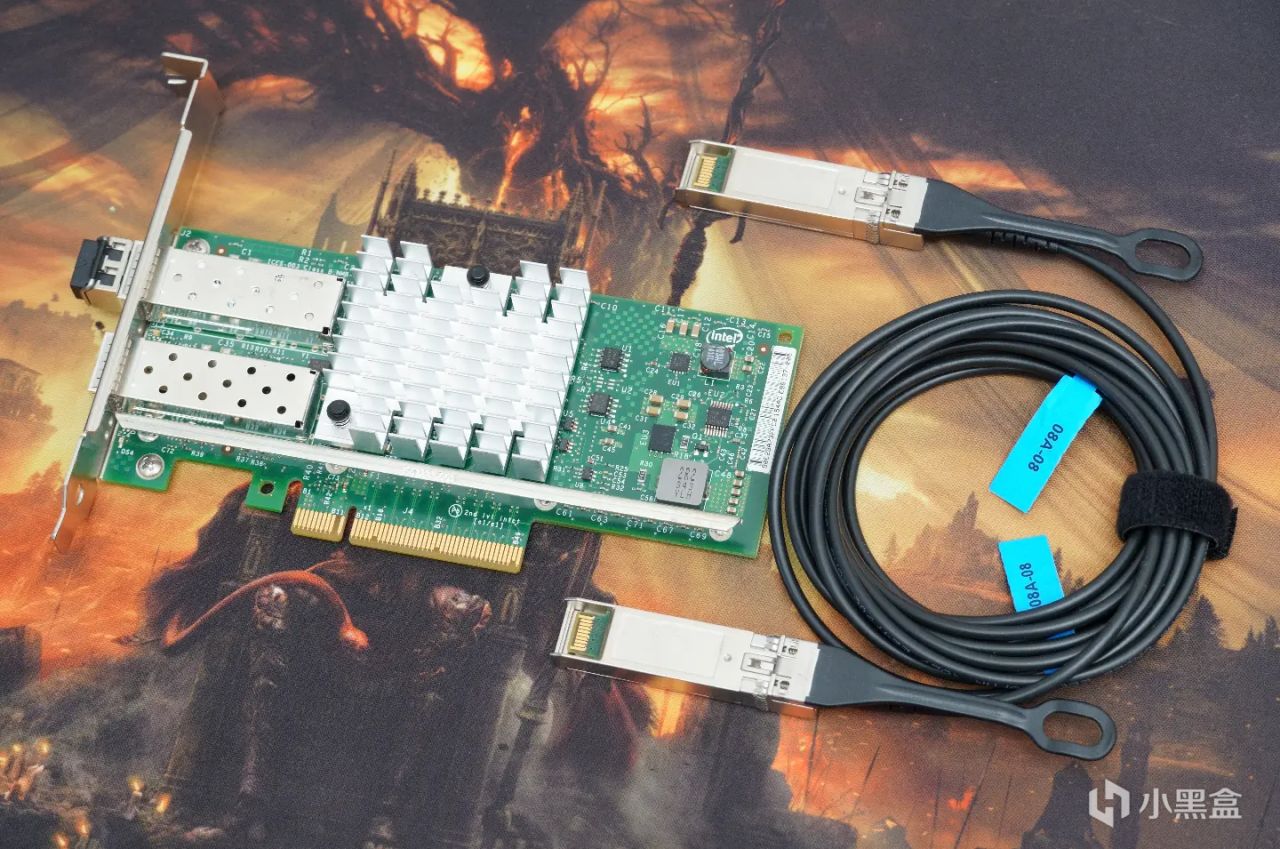 ▲因为七彩虹iGame Z790 VULCAN X V20火神主板只有2.5G网口与5G网口各一个,即使组成链路聚合,也无法跑满绿联私有云DXP480T Plus的万兆带宽,因此我便入了这个拆机的intel 82599ES万兆网卡,双端口SFP+,可玩性很强,刚好可以连接在华硕RT-BE88U的SFP+万兆口上,这样就能构成从NAS到电脑全万兆的有线网络连接。