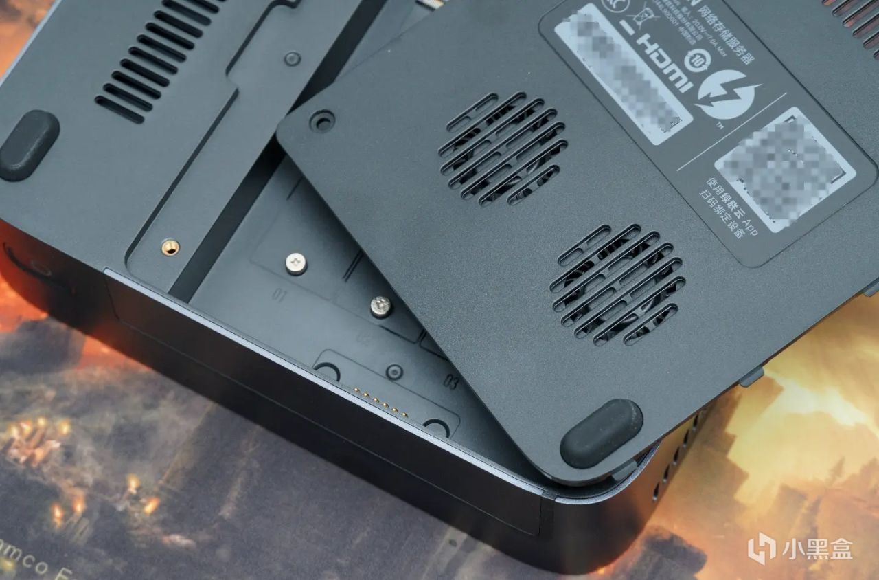 ▲如果并排装满4根SSD,那发热量其实也很大,所以绿联很贴心在背板上的设计了一个磁吸触点供电的双涡轮风扇散热模块,包装SSD能够低温、全速运行。