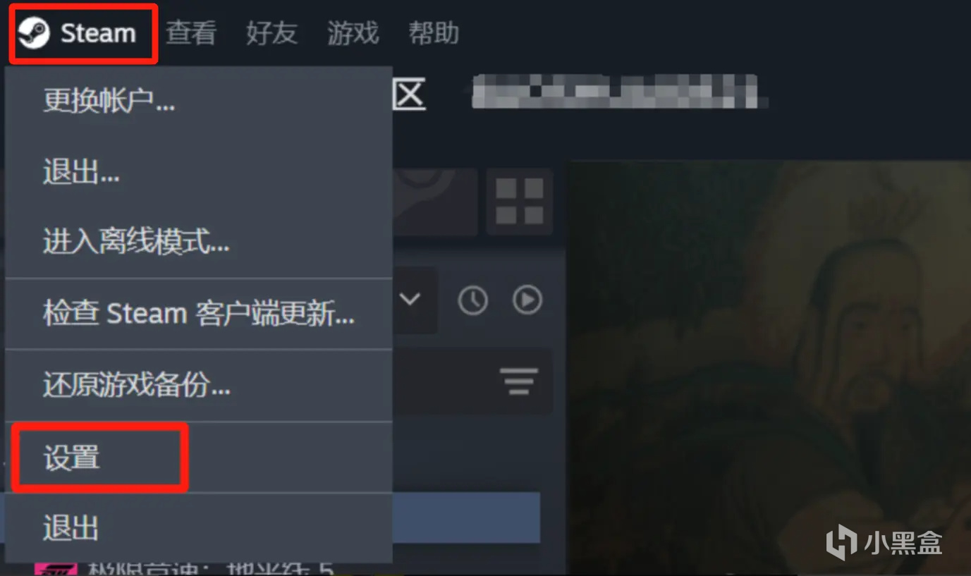 ▲紧接着便进入Steam 安装游戏到NAS中并游玩的部分了,在Steam中点击Steam图标呼出菜单,选择设置。