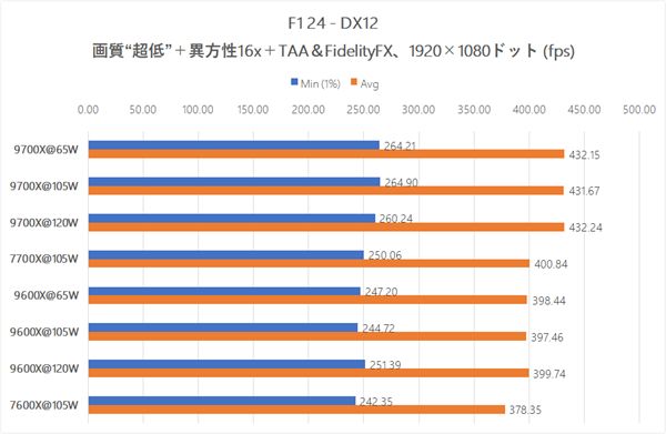 但Ascii.jp实际测试发现,在将AMD锐龙5 9600X和锐龙7 9700X设置并锁定为105W后,对于游戏性能的提升微乎其微,而且多款游戏均显示出一致的结果。
