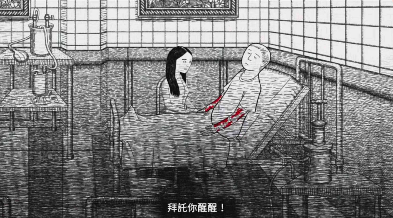 值得注意的是,通向这三个结局剧情都有一个节点,这个节点是结局走向的关键:主角从精神病院跑出,看到一个深渊,选择跳下去会触发两个结局,选择回到病院会触发一个结局。