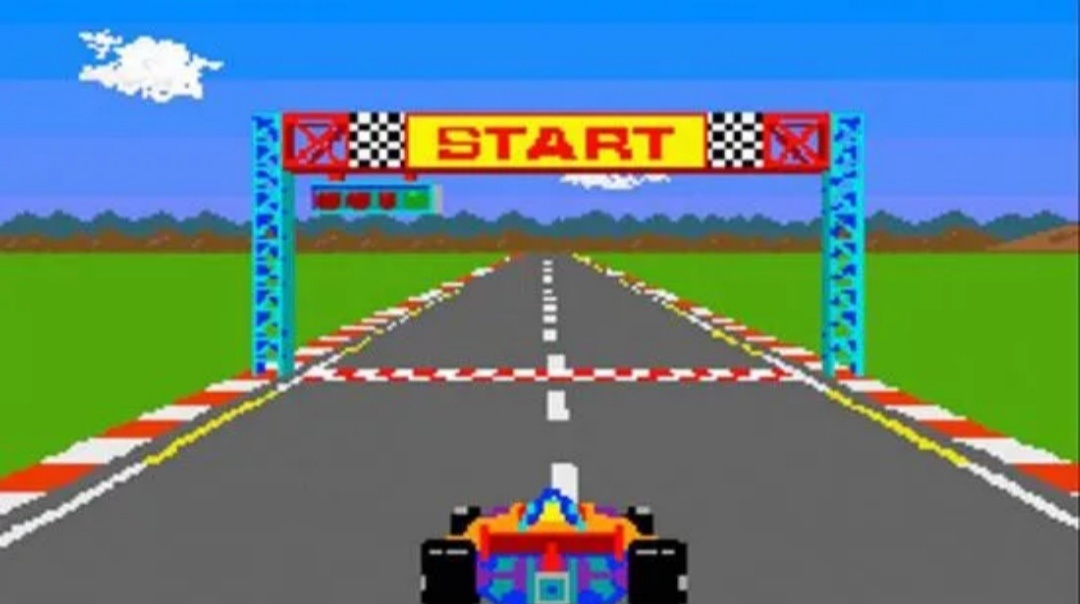 《杆位》(Pole Position),由南梦宫开发的一款方程式赛车游戏。岩谷彻(《吃豆人》游戏设计师)设计。拟真街机框体、操作和视角、计圈规则、过弯时的箭头提醒...本作建立了现代赛车游戏的基本框架。
