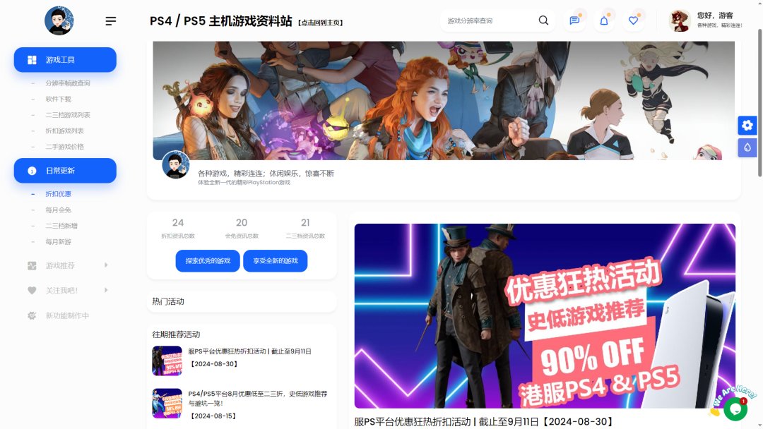 第三块是游戏推荐栏目,主要是PS平台游戏推荐。比如双人游戏推荐,PS+二档会免游戏推荐等等。