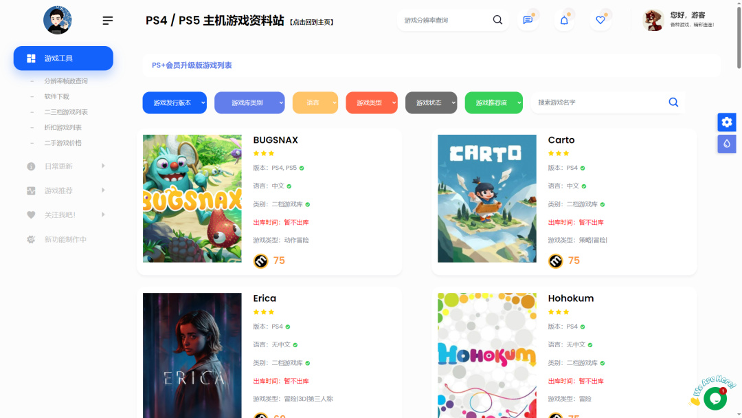 比如你想找PS5版,游戏推荐度4星以上,有中文的角色扮演游戏。勾选条件后,点击搜索就能出结果,使用起来很方便。另外哪些游戏即将出库,我们也做了一个分类。这个功能最大的好处呢,是能让大家快速找到自己想要玩的会免游戏。没开会员的朋友,也能以此作为参考。看看哪些游戏在库里,是否值得开这个会员。