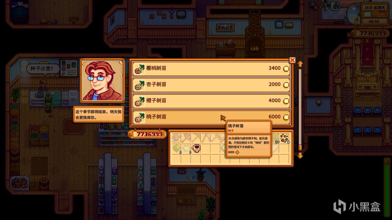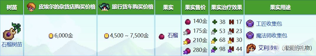 ⑤普通的果樹苗可以在皮埃爾的雜貨店和旅行貨車購買,偶爾也會在骷髏洞穴的寶箱層中找到。