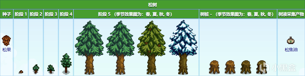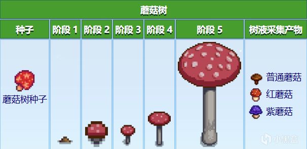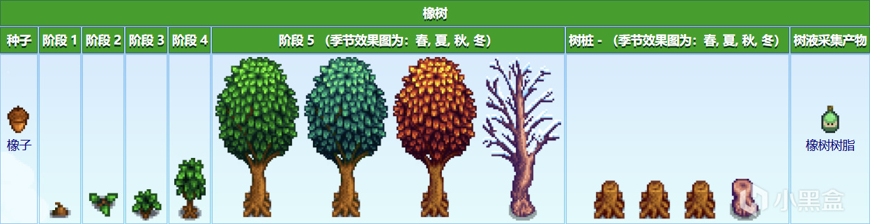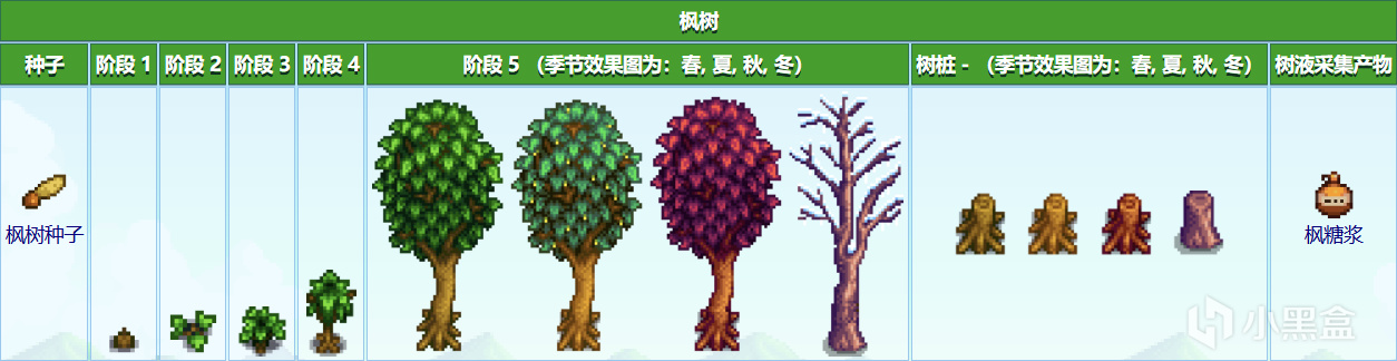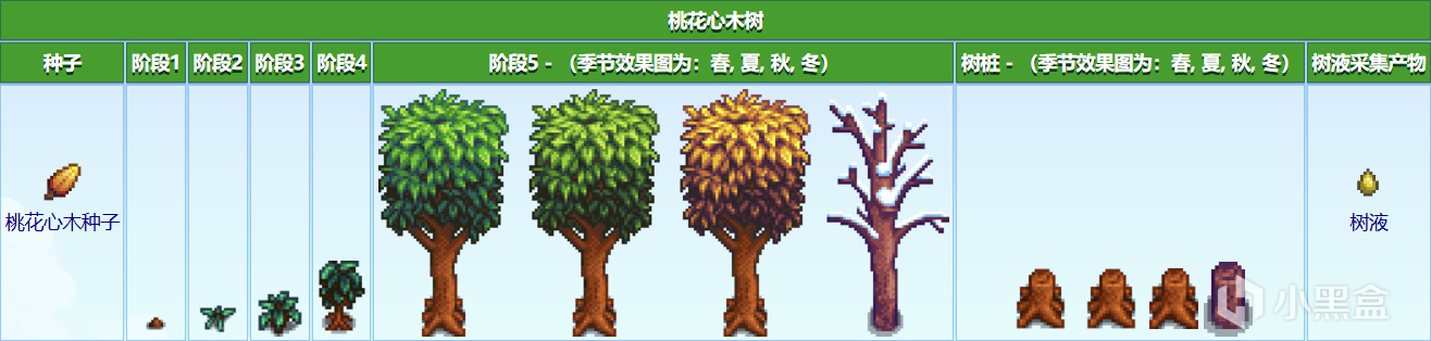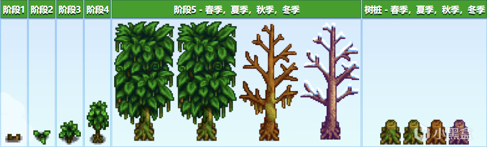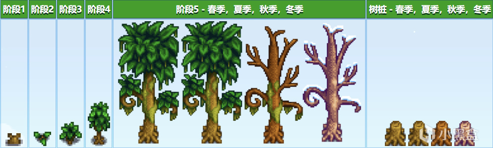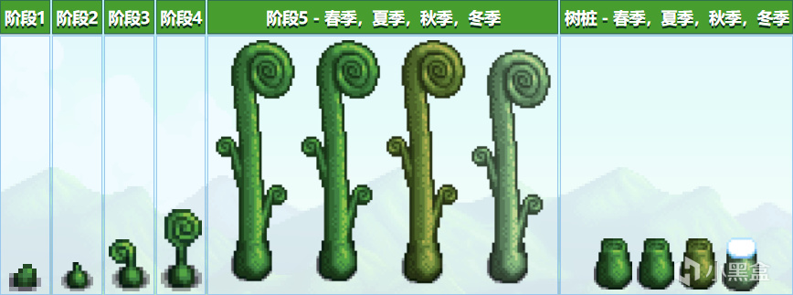 ①一棵樹的成熟時期分五個階段,到成熟期可以搖晃樹獲得種子。