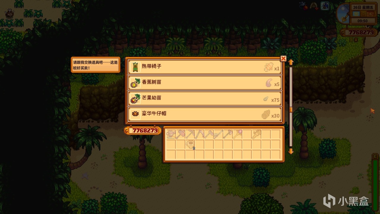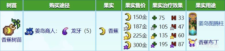 ⑥香蕉樹和芒果樹在姜島上購買或者敲開金色椰子,擊敗老虎史萊姆概率獲得,島嶼辦事處的收集獎勵。