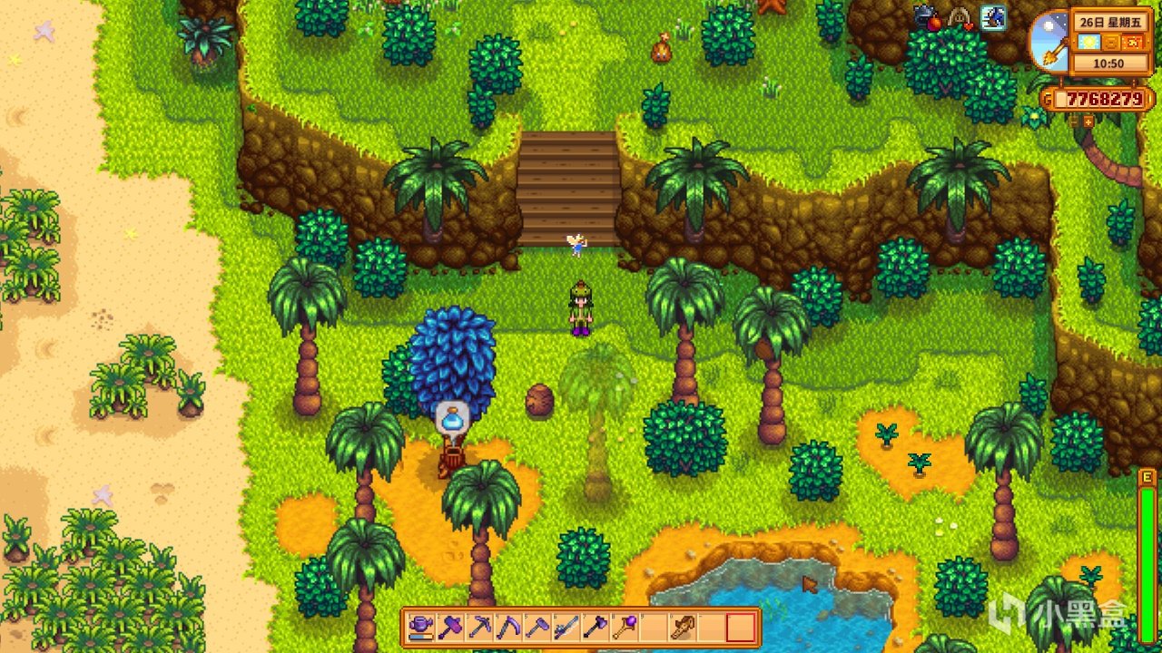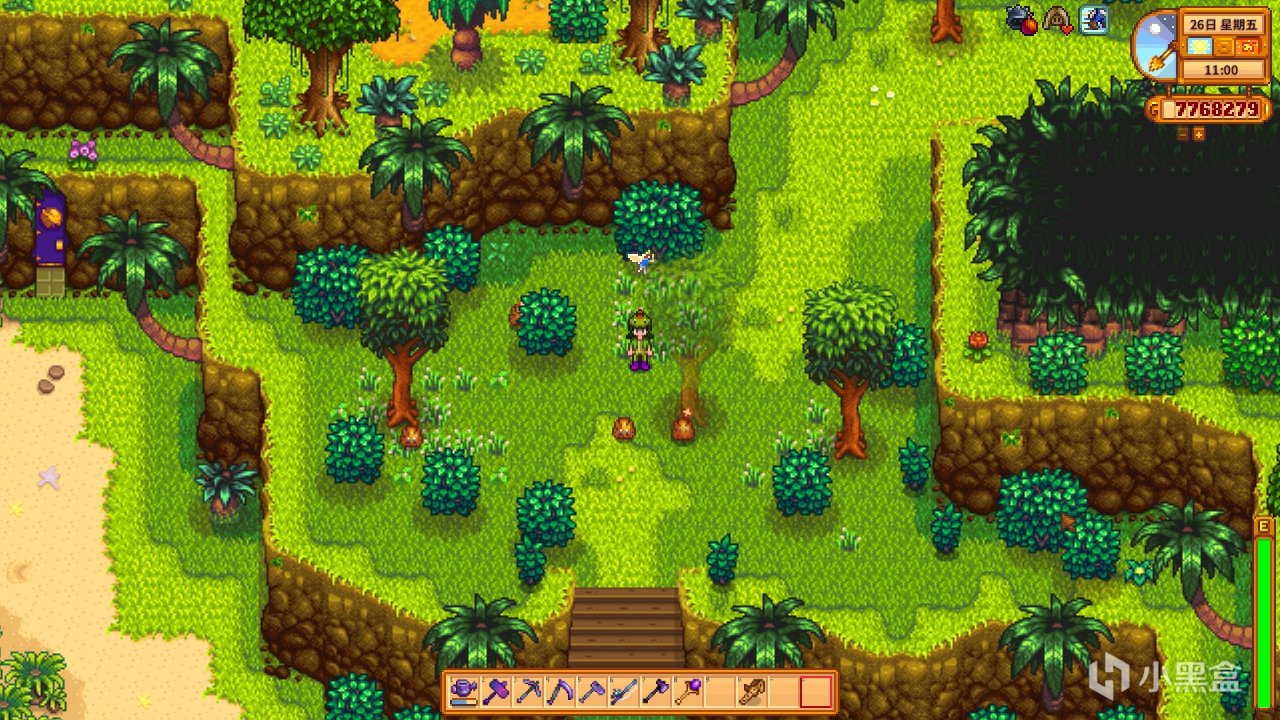 (2)當搖晃或砍倒它時,有概率掉落椰子。姜島上的棕櫚樹有概率掉落金色椰子。