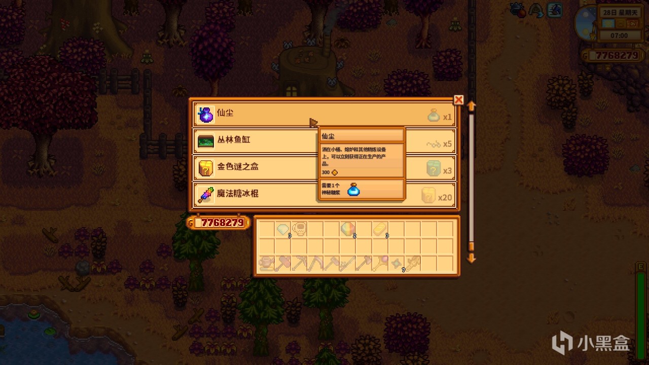 ④果樹可以被砍伐,砍伐的果樹是成熟的,它會產出一個與其果實相同品質的樹苗。品質越高,果樹成熟得也越快。