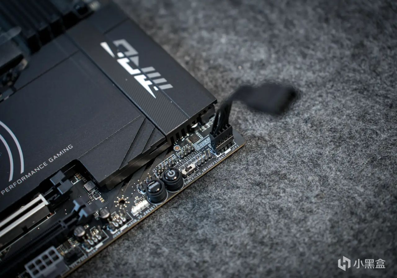 SATA插槽与前面板所使用的USB 3.2 Gen1、Type-C插针都采用了侧向设计,方便走线。
