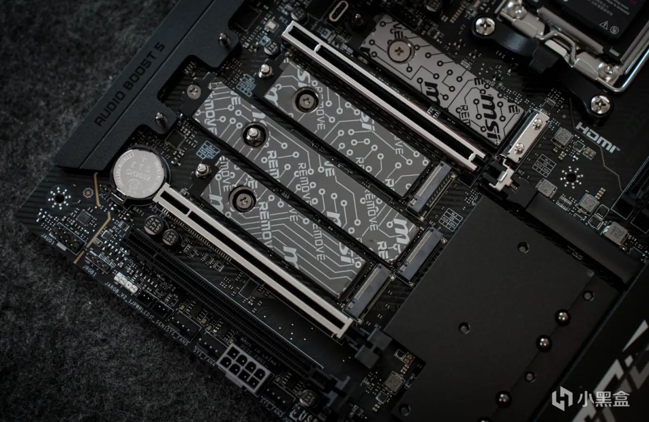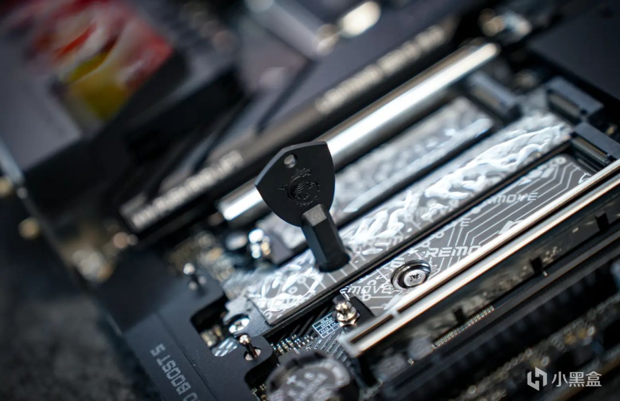 第二个创新就是第2代免螺丝M.2冰霜铠甲。对比上一代的快拆设计,这次的免螺丝M.2冰霜铠甲不仅仅是CPU下方的第一个M.2插槽使用,它是覆盖了主板上所有的M.2插槽。单手+免工具的设计安装M.2固态也更舒心。