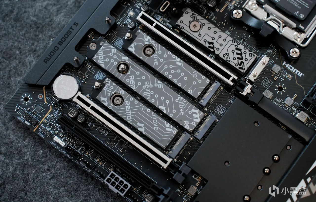 这里也要说一下微星MPG X870E CARBON WIFI暗黑主板一共搭载了4个M.2接口,其中有2个是M.2 Gen5 x4接口,带宽为128Gbps,还有2个是M.2 Gen4 x4插槽,带宽为64Gbps,除此之外还配备了4个SATA 6Gbps接口。