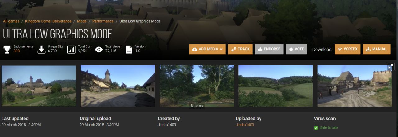 画质提升玩家可以跳过这个mod了,介绍这个mod的原因是有人问有没有画质补丁能让渣机也能玩天国拯救。嗯......问我这个问题的朋友你就下个这个mod试试吧。