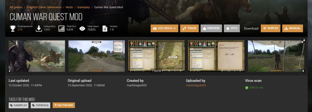 看介绍很有意思,增加了新任务和机制,库曼人会攻打各个城镇,你需要加入当地部队来抵抗库曼人的攻势,避免npc被杀。这种机制大改的mod我是不敢玩的,很容易出bug。建议大伙也本体通关后存个档再体验这个mod