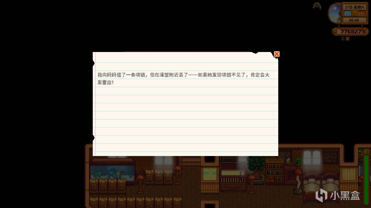 除冬季外,在溫泉外的水池裏可以釣一條華麗的項鍊。把項鍊交給卡洛琳交談獲得50點友誼值,給阿比蓋爾交談獲得100點友誼值。