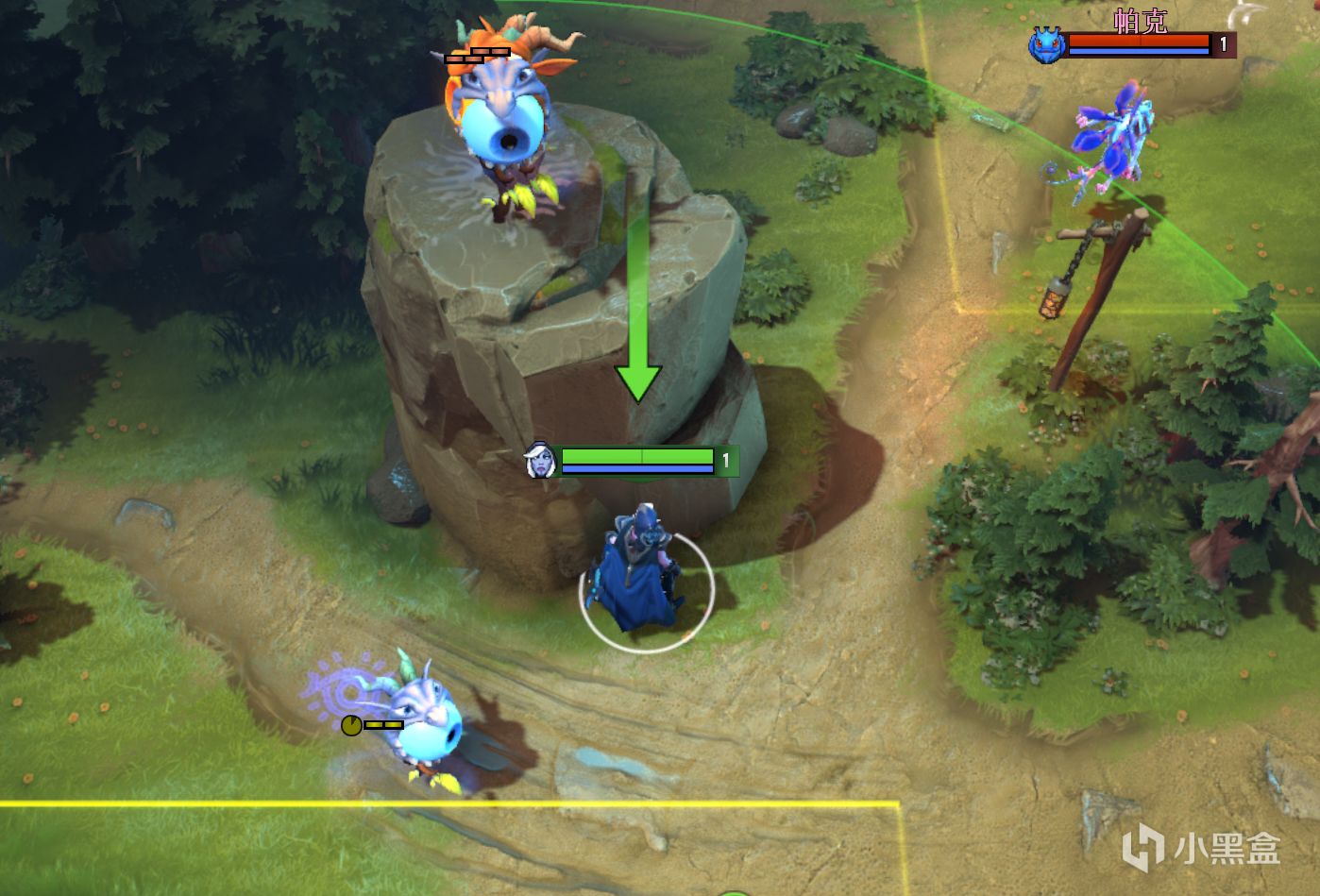 不需要高台有真假眼,也可以排掉对面在高台插的眼。当高台范围内有假眼,你围绕着高台转,当转到某一个位置时,是能够看到对面的眼(这个技巧在前期如图所示位置还是很好用的)