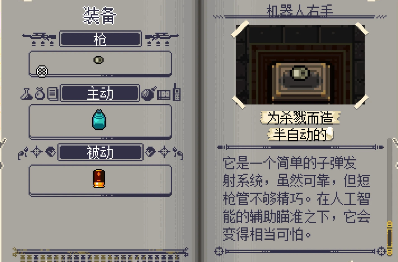 而且這把爲殺戮而造的短槍,可以通過垃圾增強威力,這樣緊靠拾取人類殘破的裝備,也會使機器人們的戰鬥力越來越強。