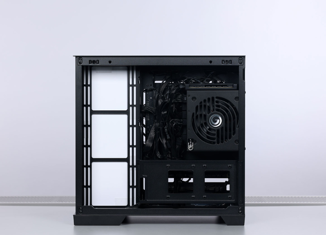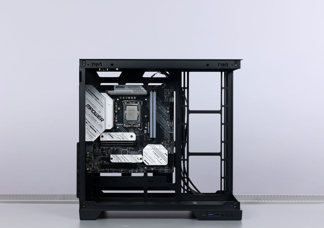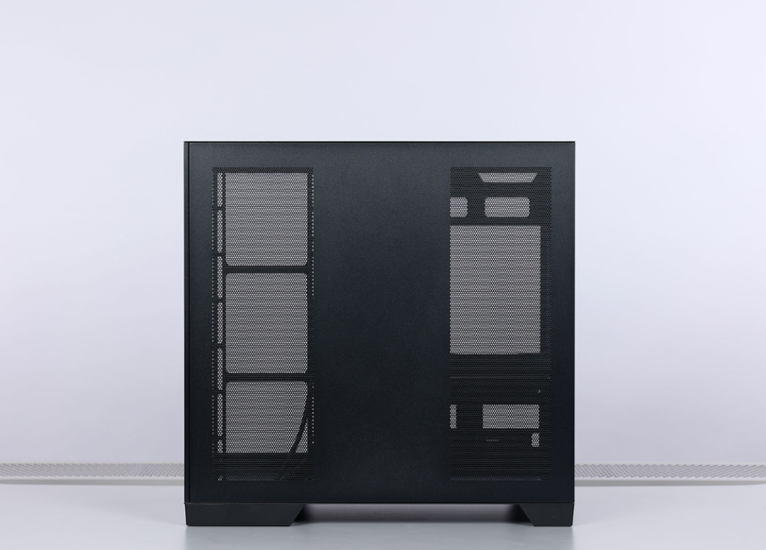 機箱右側是一塊全金屬面板,但有大面積散熱開孔,可以給機箱提供優秀的散熱條件。