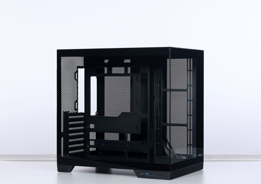 爲了更好的展示顯卡的高顏值,機箱選擇的是黑色的沐光MAX海景房。機箱三圍:420*285*412mm,前+側雙面高透鋼化玻璃,搭配無A柱的設計,機箱內視野更加通透。黑色看似低調,但質感同樣在線。